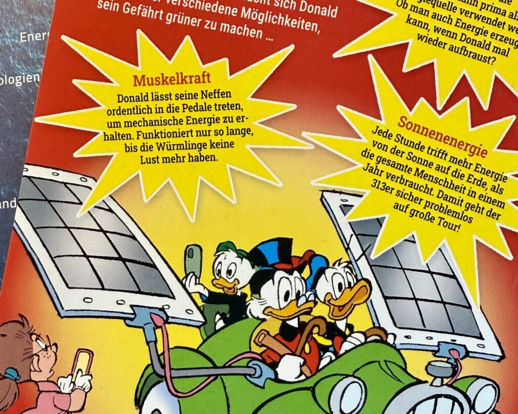 Nun gut: Zur Nachahmung ist Dagobert Ducks Lösung für den Umstieg seines legendären Oldtimers „313“ auf ein E-Auto nicht unbedingt zu empfehlen. Sympathisch ist aber die beabsichtigte „Aufklärung“ für seine wohl meist sehr junge Leserschaft trotzdem und das gleich aus zweierlei Gründen. Zum einen wird sie für die Bedeutung eines Themas sensibilisiert, das vermutlich auch […]