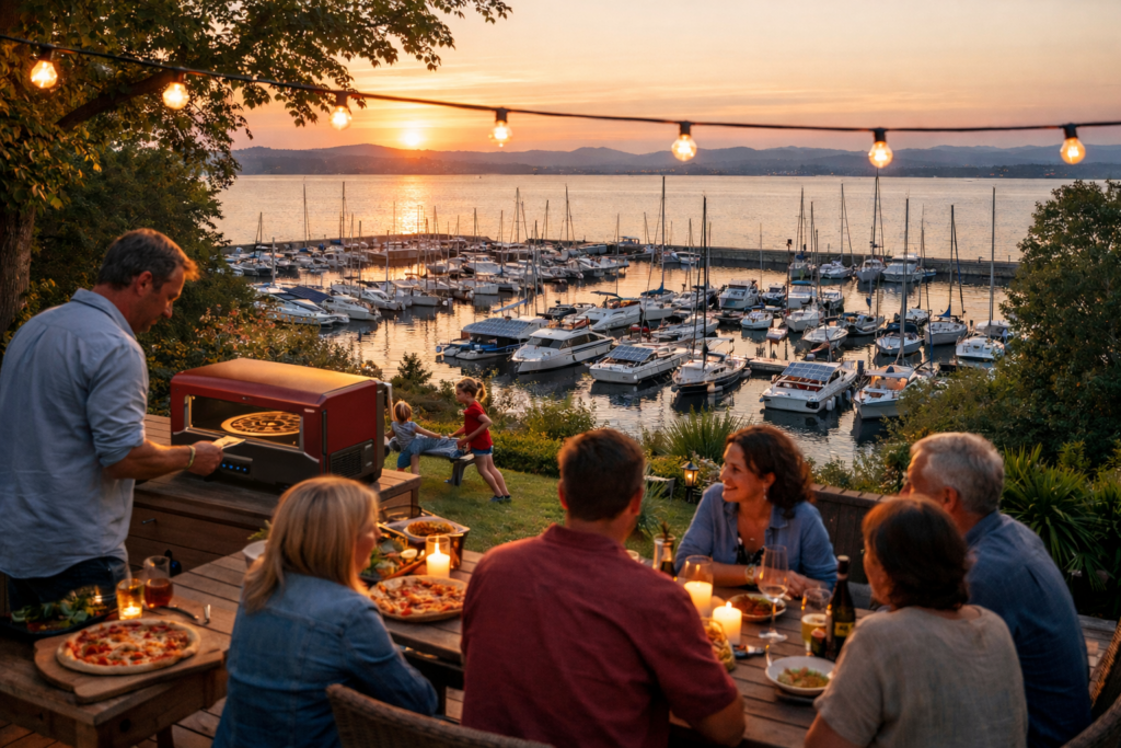 Im Ofen der Außenküche backt die Pizza, während auf der Terrasse Gläser klirren und im Garten Kinder zwischen Apfelbäumen und Planschbecken Fangen spielen. Es ist ein warmer Abend am Bodensee. Die Sonne steht noch hoch genug, um alles in dieses goldene Licht zu tauchen, das Gespräche länger werden lässt. An der Hauswand hängt ein Foto […]