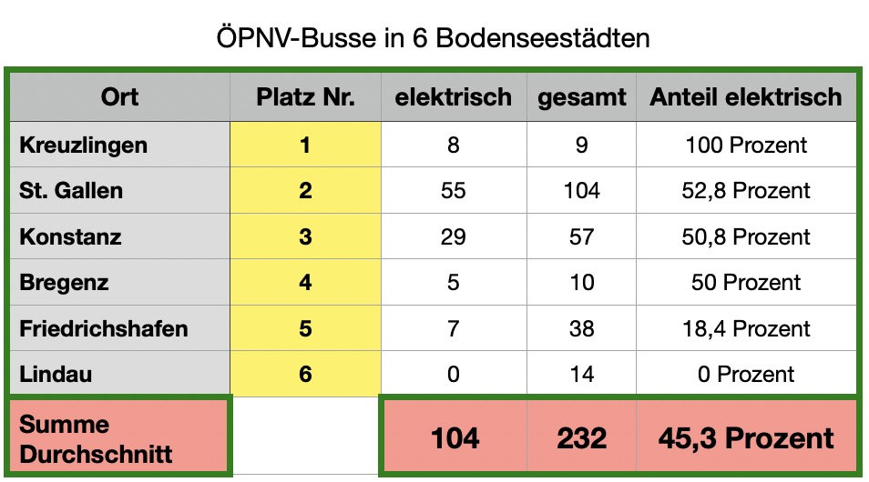 Fazit: In den sechs aufgeführten Städten am Bodensee gibt es insgesamt 232 Stadtbusse.