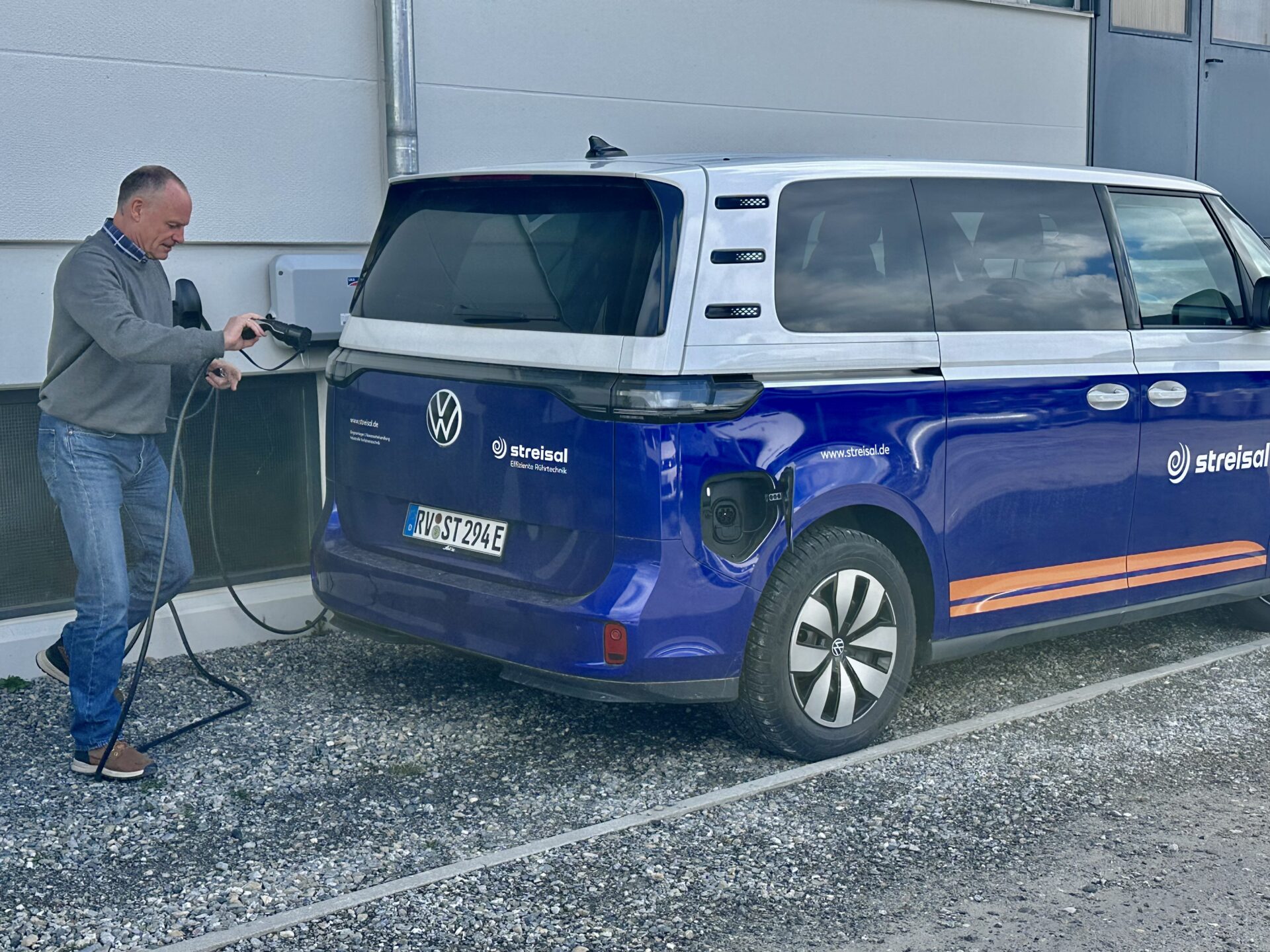 Thomas Stemmer beim Laden seines E-Autos in der Firma